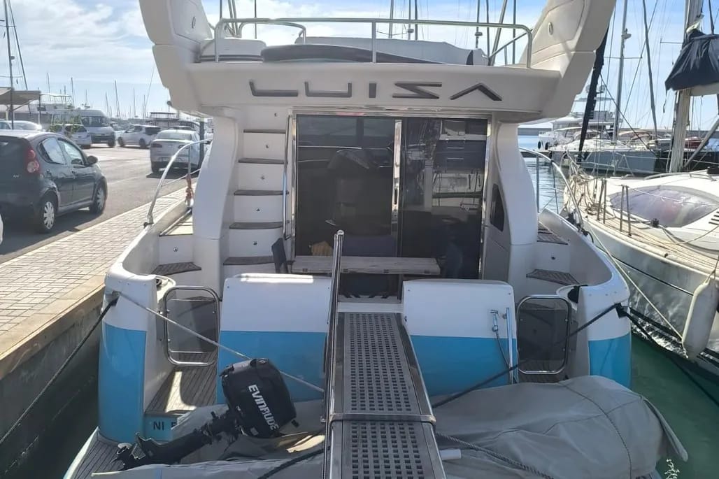Refit completo hecho el año 2023, matrícula española, impuestos pagados , hélice de proa, hélice de popa, Yacht control con las cuatro hélices del barco en el control, neumática auxiliar nueva marca Zodiac con motor seis caballos nuevo, pasarela hidráulica, 4 camarotes 3 baños, uno de marinería, todo el barco y los camarotes todos tienen aire acondicionado y calefacción independiente, televisiones en todos los camarotes y en el salón principal, tapicerías y toldo bimini del barco nuevos, Color del barco, azul, turquesa, Barco, muy cuidado, solo un dueño anterior, Barco muy familiar, Antifouling, anodos, revisión de motores, el año pasado, cambio de filtros y aceites tanto de los motores como del generador.