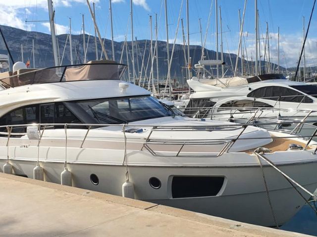 2014 Bavaria Virtess 420 Fly El epítome del lujo, el diseño y el rendimiento. Con sus líneas puras y un diseño excepcionalmente moderno. Es la encarnación de la tecnología de vanguardia. El timón garantizar una visión perfecta de todos los instrumentos y controles en todas las condiciones de navegación. ¡Bandera española e impuestos pagados! Mantenimiento al día.