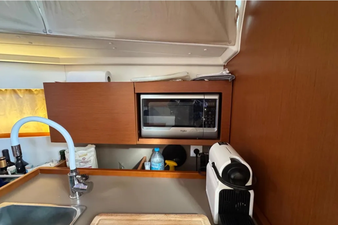 Propulsor de proa: Bomba de sentina eléctrica: Horno: Bomba de sentina manual: Microondas: Agua caliente: Nevera: Cargador de batería: