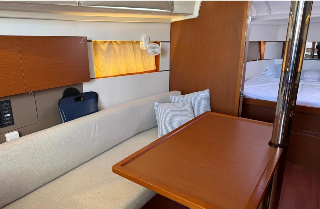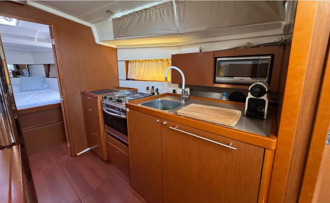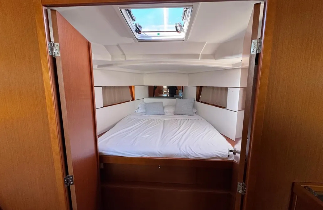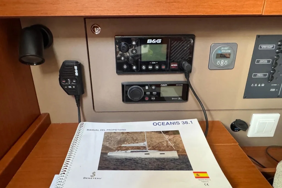 Electricidad Circuito completo 12/230 V (Enchufes interiores, cargador de batería de 40 Amp, toma de puerto) 1 Batería de servicio VICTRON Litio 170 Amp Inversor 2000W PANELES SOLARES VICTRON   Electrónica PAQUETE COASTAL • 1 Pantalla gráfica Triton 2 (Consola de gobierno de babor) • Sonda (Corredera, Velocímetro, Temperatura) • Sensor de viento B&G (Veleta, Anemómetro) • Veleta Windex PAQUETE OFFSHORE • 1 Pantalla inalámbrica ancha de 7'' - Consola de gobierno de babor (Triton 2 se mueve a estribor) • Mesa de cartas: VHF B&G V50, función receptor AIS PILOTO AUTOMÁTICO B&G NAC3 (INCLUYE GIROCOMPÁS) B&G AIS 500 VHF FIJA B&G-V50, RECEPTOR AIS - AURICULAR DE BAÑERA H50 Radar B&G 4G Equipamiento de Cubierta WINCHE DE MANIOBRA ELÉCTRICO DE ESTRIBOR CONTROL DE ANCLA EN LA BAÑERA CON CONTADOR DE CADENA KIT DE FONDEO COMPLETO FUNDA BLANCA DE PVC PARA LA RUEDA DEL TIMÓN MOTOR FUERABORDA SUZUKI 6CV (2022) HÉLICE DE PROA AUXILIAR HIGHFIELD (2020) SUELO DE BAÑERA EN TECA BIMINI Y CAPOTA GRIS CADETE   Interiores / Alojamiento COCINA HORNO/GRILL INOX 2 FUEGOS HORNO MICROONDAS 230V PORTILLOS FIJOS EN LOS BAÑOS MOSQUITERAS PARA PORTILLOS (VERSIÓN 3 CABINAS) ESCALONES DE MADERA MACIZA   Mantenimiento MANTENIMIENTO AL DÍA Y NUEVO ANTI-FOULING HEMPEL (ENE 2025) Equipamiento