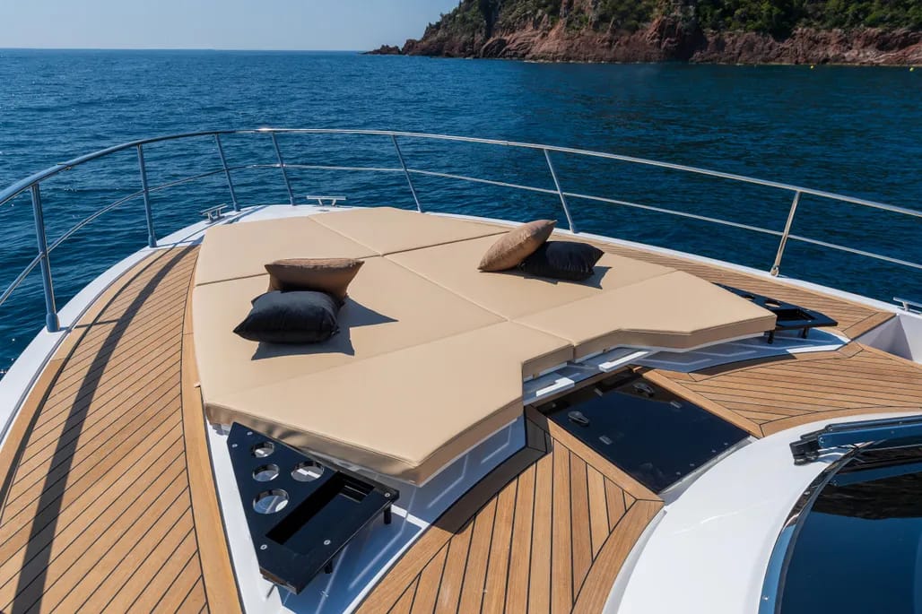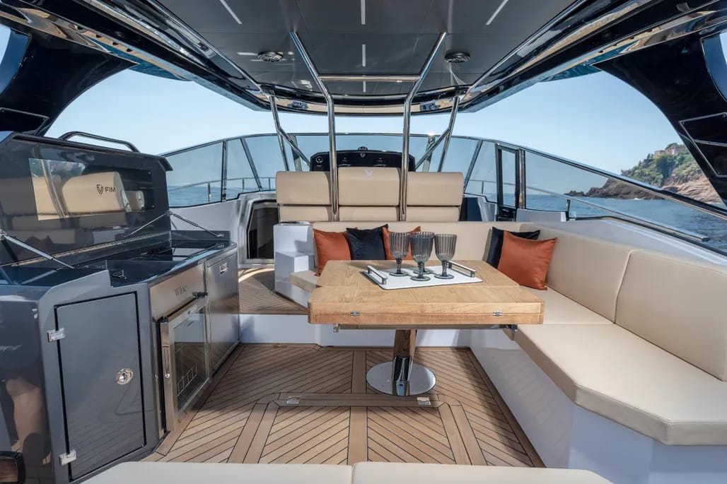 La amplia cubierta del FIM 470 Regina está diseñada para el disfrute y la relajación. Con zonas de solarium, cómodas áreas de asientos y una plataforma de baño de fácil acceso, cada rincón invita a disfrutar del sol y del mar. La capacidad de personalización permite adaptar el espacio a tus necesidades, asegurando que cada salida sea única.