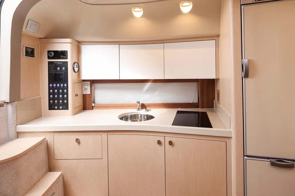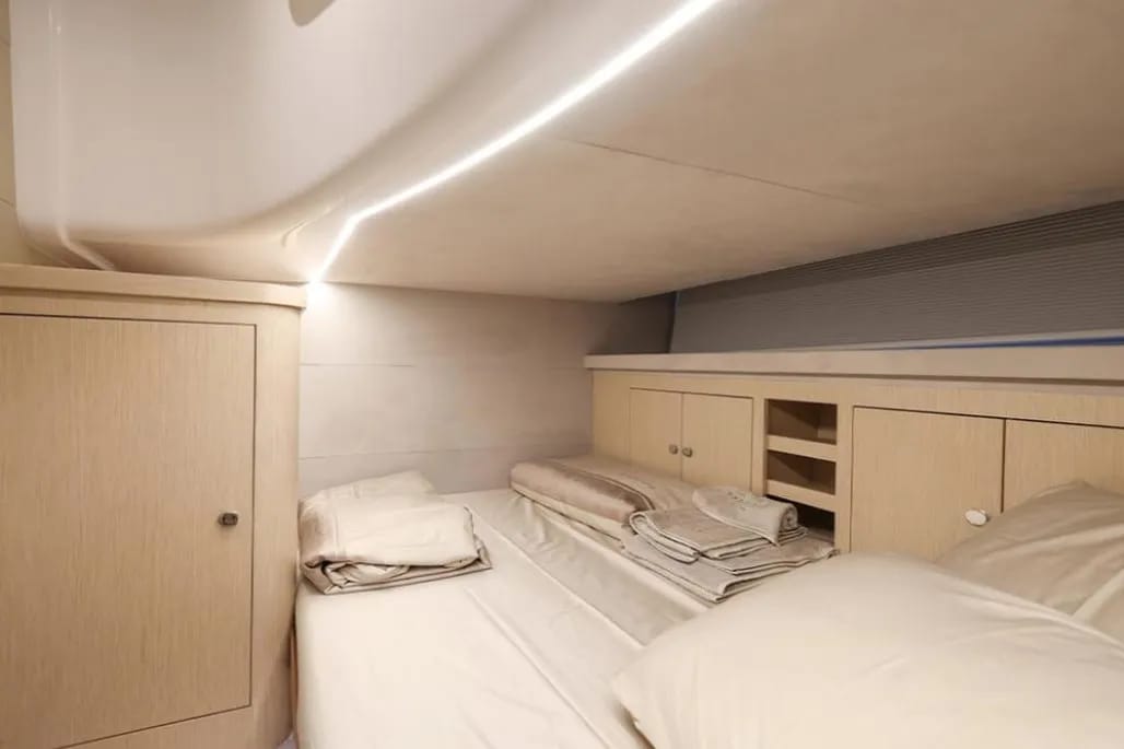 El Focus Power 44 no solo destaca por su rendimiento, sino también por su distribución adaptable que se ajusta a las necesidades de su propietario. Puedes elegir entre 2 o 3 cabinas dependiendo de tus necesidades de espacio. La opción de cabina adicional te proporciona más comodidad para tus invitados, mientras que las cabinas principales están diseñadas con materiales de la más alta calidad para garantizar una experiencia de descanso inigualable.