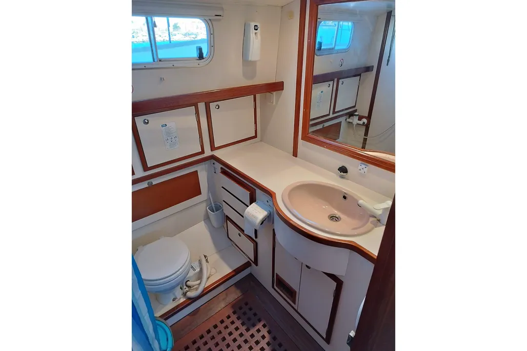 Propulsor de Proa , Bomba de sentina manual, Aire acondicionado, WC eléctrico, Agua caliente, Nevera