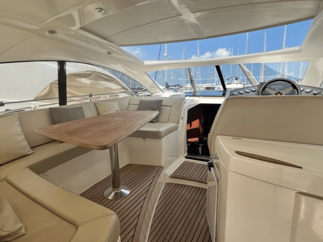 El Prestige 42S destaca por su diseño contemporáneo y sus amplios espacios interiores y exteriores. Perfecto para escapadas familiares o para disfrutar con amigos, este yate ofrece comodidad en cada rincón.